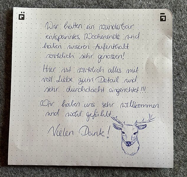 Wir waren sehr begeistert von diesem schönen und liebevoll eingerichteten Ferienhaus. Dass sowohl wir als auch unser Hund ein Begrüßungsgeschenk bekommen haben, hat uns sehr gefreut. Auch dass für den Hund alles vorhanden war, fanden wir richtig toll. Das Ferienhaus hatte alles zu bieten, es war einfach alles vorhanden, was man braucht und noch soviel mehr. Auch das Außengelände ist schön, jedoch nicht komplett umzäunt, so dass wir den Hund nicht ohne Leine rauslassen konnten. Die Fasssauna haben wir leider nicht genutzt, vielleicht beim nächsten Mal. Die Terasse ist auch toll, hier konnte man noch schön die Abendsonne genießen, nur leider hat das Wetter nicht so richtig mitgespielt. Im Sommer bestimmt traumhaft. Wir können dieses Ferienhaus absolut empfehlen.